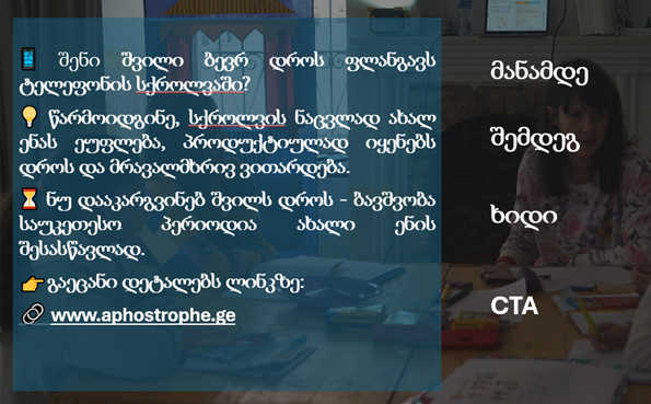 ფრანგული ენის ცენტრი ,,აპოსტროფი“-ს მაგალითი: