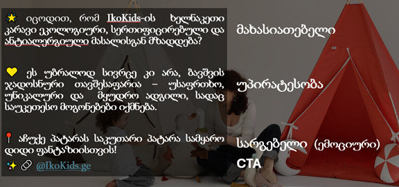 ქოფირაითინგი მარკეტინგული სტრატეგიის განუყოფელი ნაწილია. კარგი ქოფი არა მხოლოდ ბრენდის ხილვადობას ზრდის, არამედ მომხმარებლის ნდობასაც აყალიბებს და გაყიდვებსაც უწყობს ხელს. ეფექტური ტექსტი: